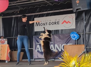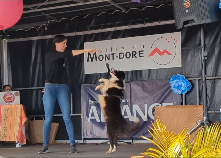 En l'honneur de la journée mondiale des animaux, la commune du Mont-Dore a organisé une journée de sensibilisation, au cours de laquelle nous avons fait une démonstration de dog dancing et de disc dog.