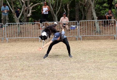Enchaînement de tricks sur une musique pour danser avec son chien. Activité à la fois ludique, technique et créative.